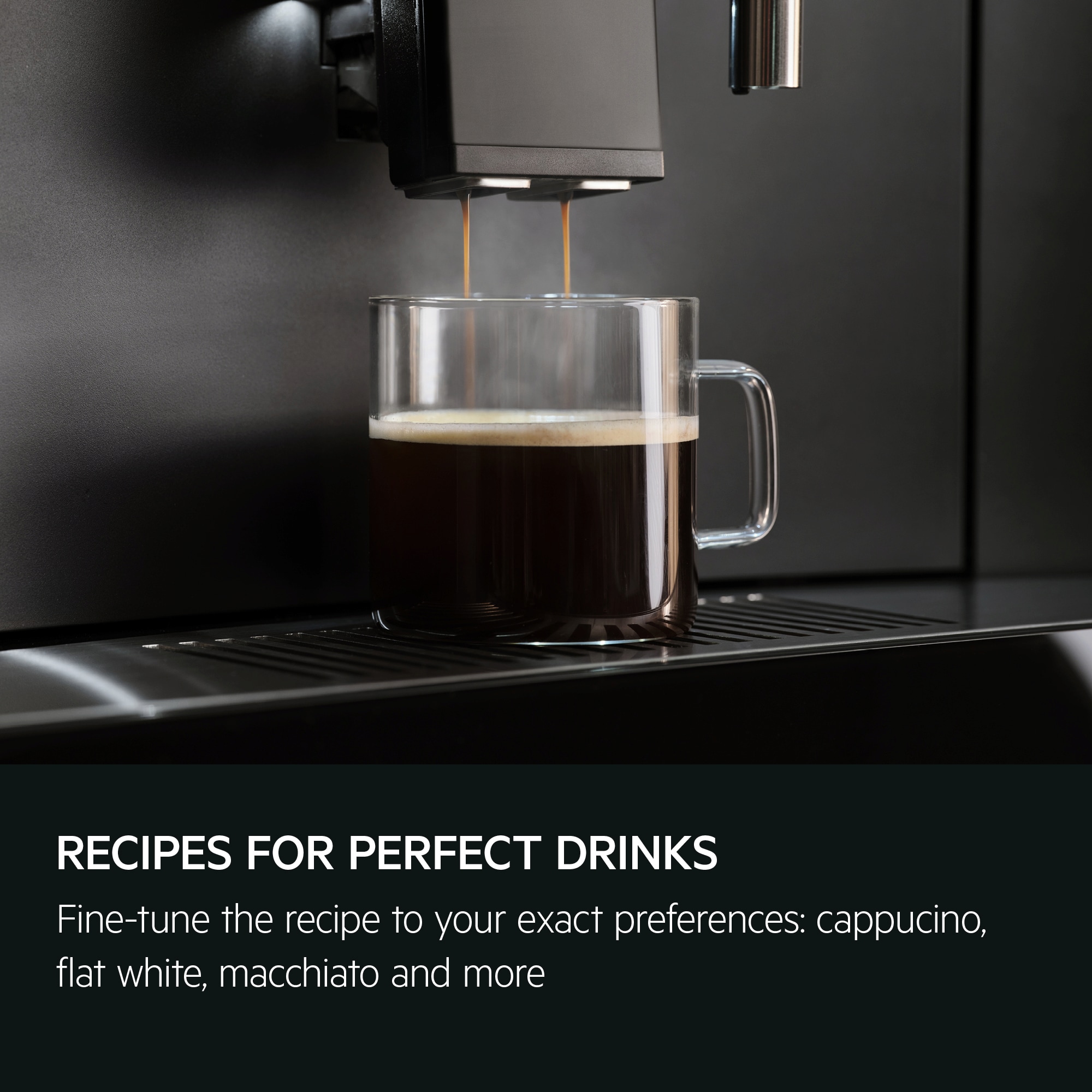 Adjustable coffee and milk quantity settings let you fine-tune the recipe to your precise preferences: cappucino, flat white, macchiato and more.