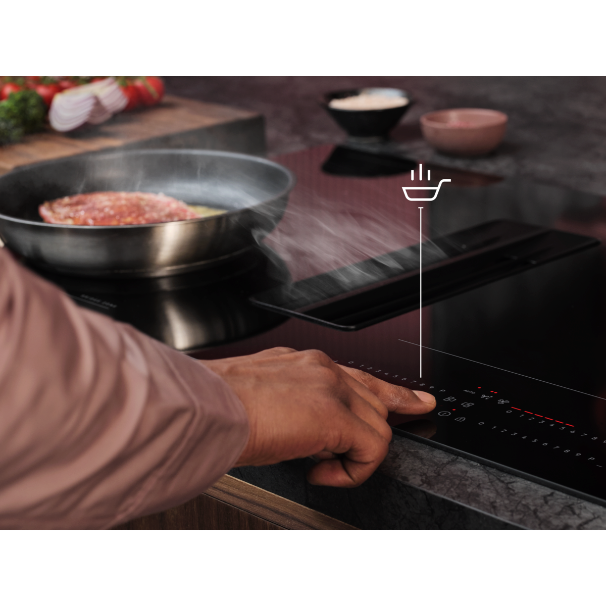 The 7000 SenseFry® Extractor Hob lets you know when your frying pan reaches the optimal temperature and maintains even heat for perfect taste and texture. It also has a powerful built-in extractor that rids your kitchen of steam and odours.