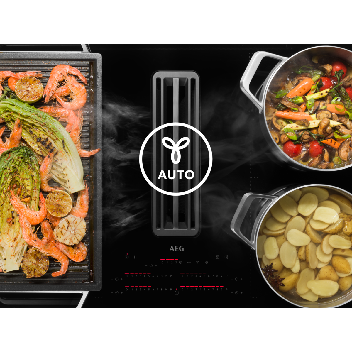 AEG EcoLine Induction Hobs with Integrated Extractor are selected based on having the highest energy rating.