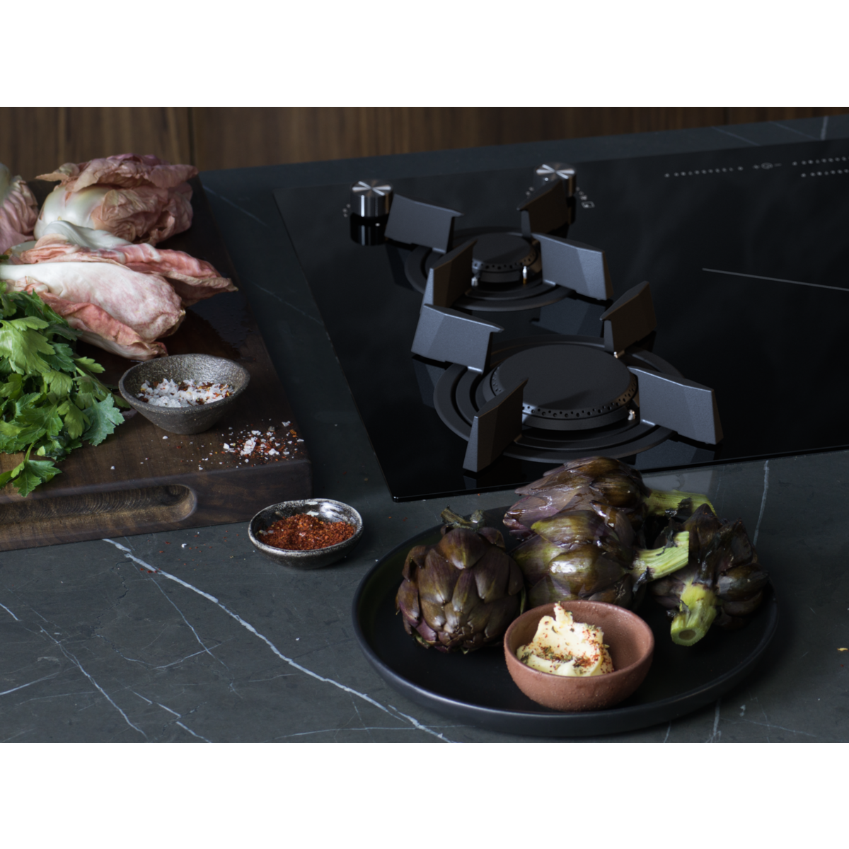 There’s no need to choose between gas and induction heating anymore! This hob gives you the benefits of both, with gas as well as induction cooking zones.