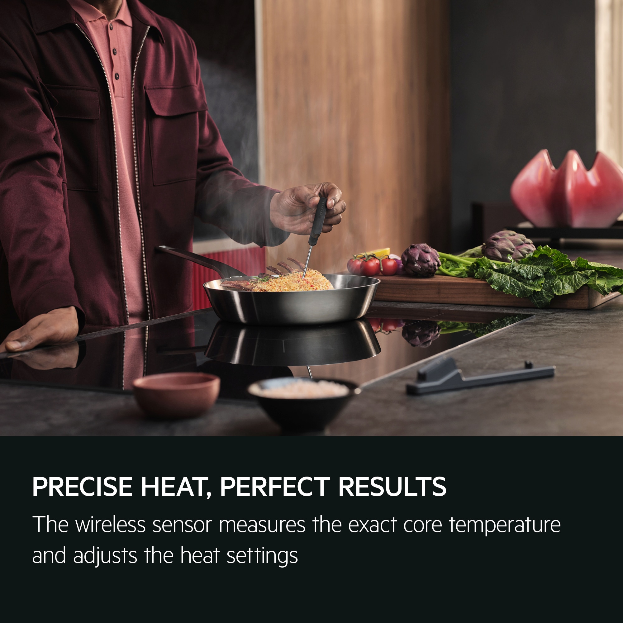 The 9000 SensePro® Induction hob has a wireless food sensor that measures the food temperature and automatically adjusts the hob settings for precise heating. Elevate the taste and texture to perfection, no matter what you’re cooking.