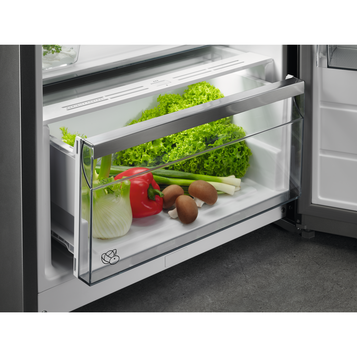 Spacious full width drawer for long, odd shaped vegetables