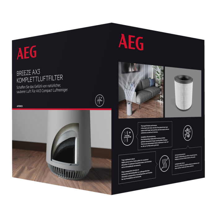 The Breeze AX3 filter creates the feel of natural, clean air through a perfect combination of fine particle filtration and unpleasant odour removal.