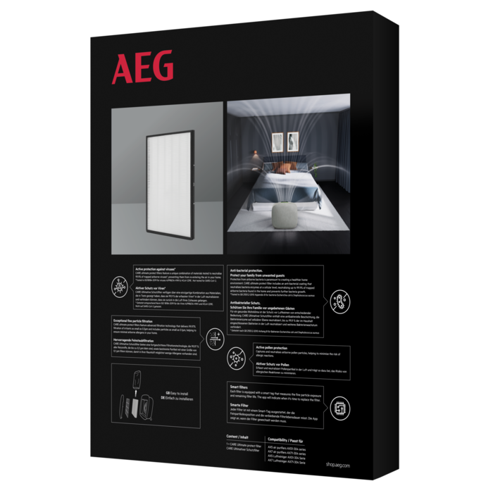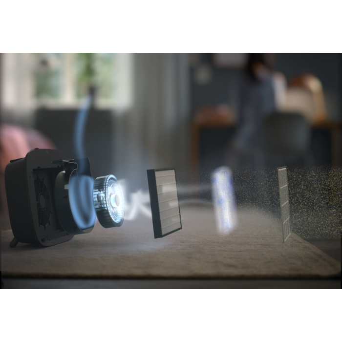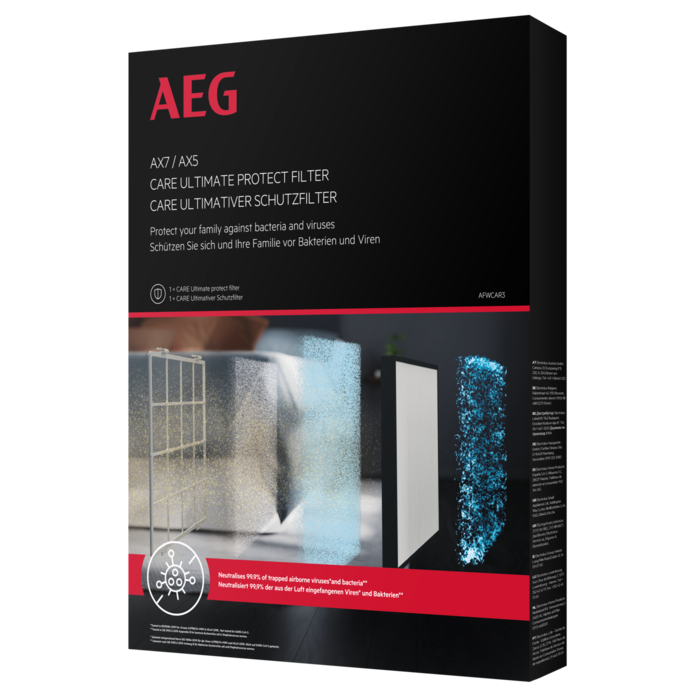 *Neutralises up to 99.99% of captured airborne viruses (tested for Influenza A virus A/PR8/34 H1N1) based on external test in 2020 according to ISO 18184-2019. Not tested for SARS-CoV-2.